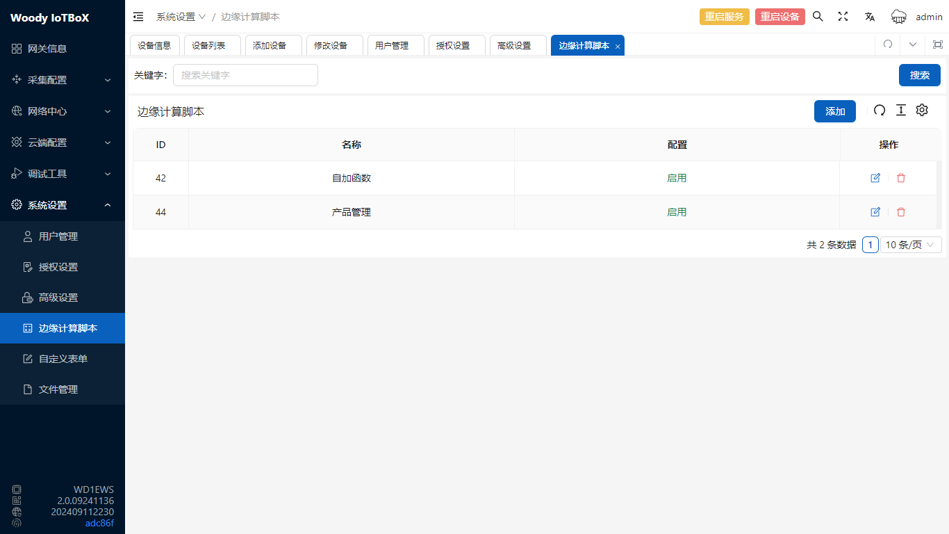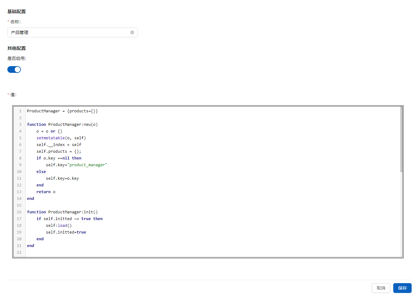 在这里可以添加全局函数或变量,尽量不要在函数外对全局变量进行计算,脚本可以启用或禁用,这里的脚本会在系统初始化时加载到所有边缘计算脚本环境里