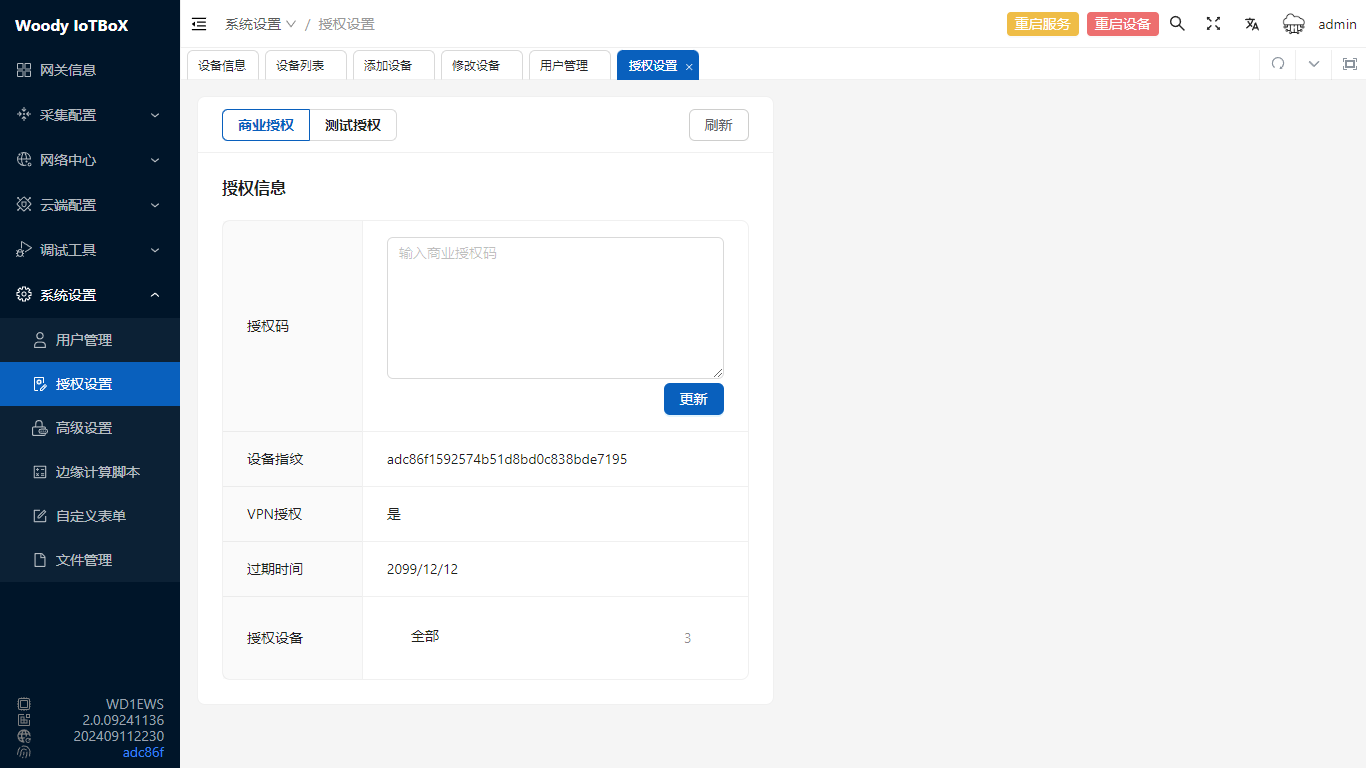 - 设备指纹为设备唯一编码,设备授权基于设备指纹,如需更新设备授权,请联系售后